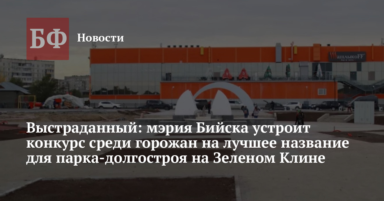 Администрация Бийска решила дать название парку, который уже второй год с большими трудностями обустраивают в микрорайоне Зеленый Клин за ТРЦ «Ривьера». Как сообщил ИА «Банкфакс» пресс-секретарь мэрии Павел Сидоренко, для этого власти организуют конкурс среди бийчан. Предположительно, он пройдет после завершения работ, которое намечено на 30 сентября.