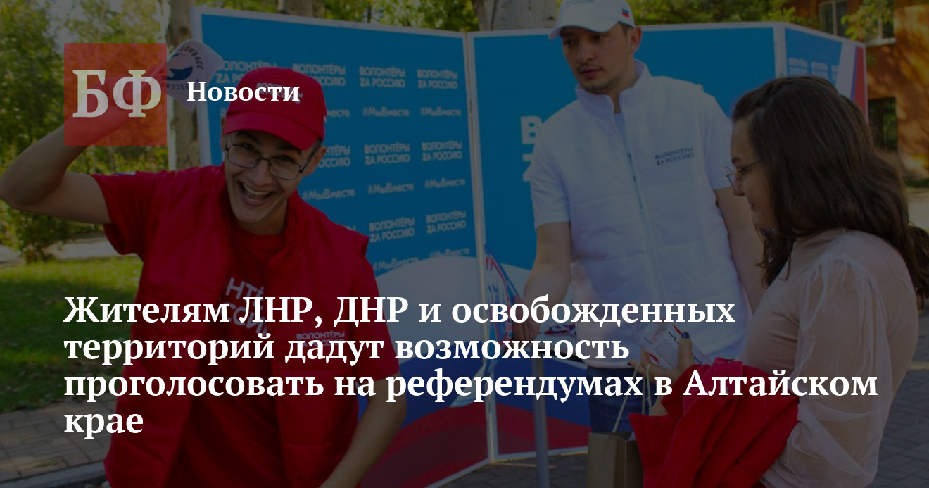 С 23 по 27 сентября в Донецкой и Луганской народных республиках, а также в Запорожской и Херсонской областях пройдут референдумы по вопросу вхождения в состав РФ. Проголосовать смогут и беженцы, уехавшие с этих территорий в Россию — здесь для них организуют избирательные участки, в том числе и в Алтайском крае. Об этом сообщает пресс-служба регионального избиркома.