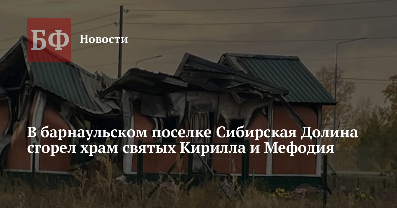 В Барнауле в ночь с 24 на 25 сентября произошел пожар в храме святых Кирилла и Мефодия, который располагается на территории поселка Сибирская Долина. Как сообщает пресс-служба ГУ МЧС России по Алтайскому краю, здание культового объекта сильно пострадало. По предварительным данным, к возгоранию привело нарушение правил пожарной безопасности при эксплуатации электрооборудования.