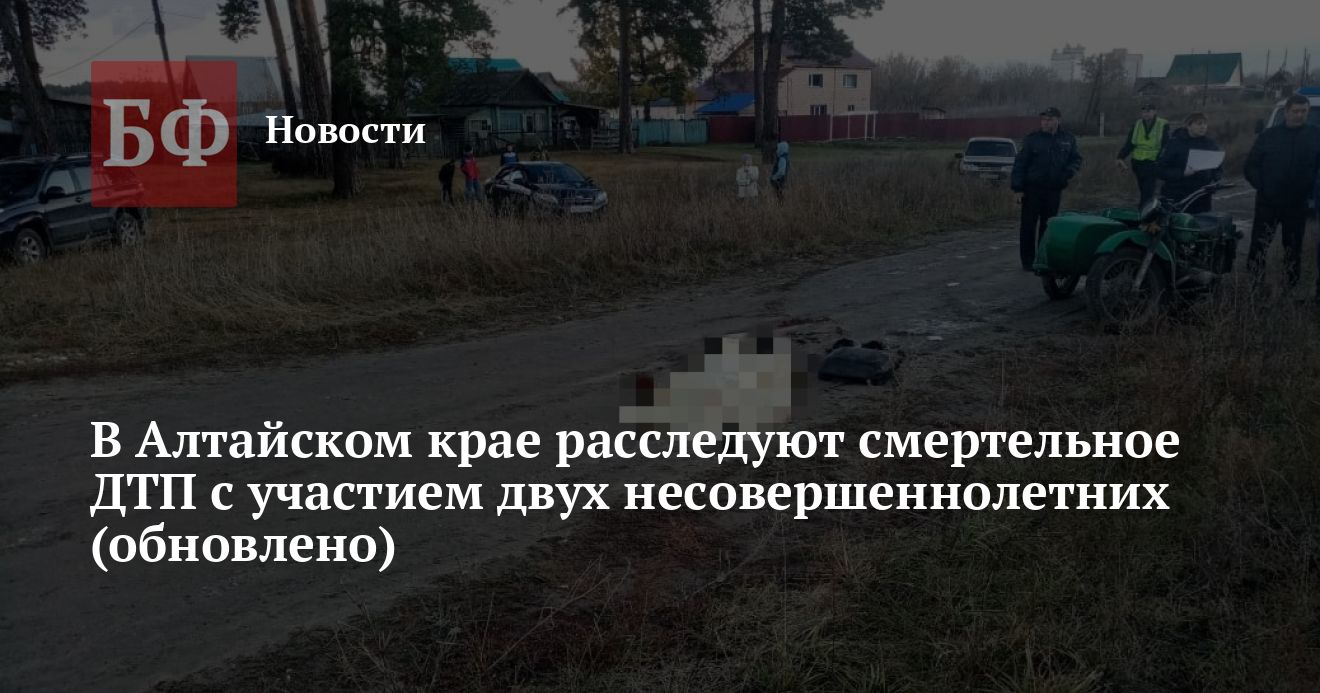 UPD 13:40: Следственными органами СУ СКР по Алтайскому краю принято к производству уголовное дело, переданное прокурором в порядке ст. 37 УПК РФ из органов внутренних дел по факту дорожно-транспортного происшествия с участием двух несовершеннолетних детей по признакам преступления, предусмотренного ч. 4 ст. 264 УК РФ (нарушение лицом, управляющим транспортным средством, правил дорожного движения, повлекшее по неосторожности смерть человека, совершенное лицом, не имеющим права управления транспортным средством).