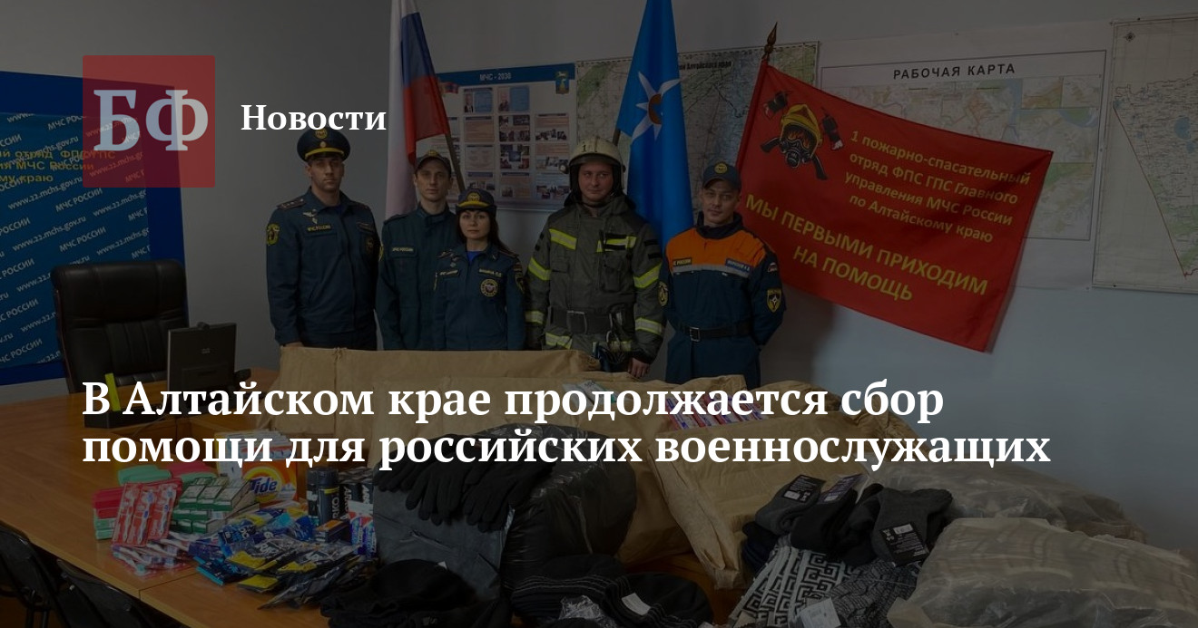 Поддержку оказывают и сотрудники краевого ГУ МЧС. В своем Telegram-канале они опубликовали соответствующее сообщение. «Личный состав подразделений Главного управления МЧС России по Алтайскому краю принимает активное участие в сборе гуманитарной помощи для российских солдат, участвующих в специальной военной операции. В список собранного входит самое необходимое: теплые вещи, средства личной гигиены, бытовая химия, бинты», — указала пресс-служба ведомства.