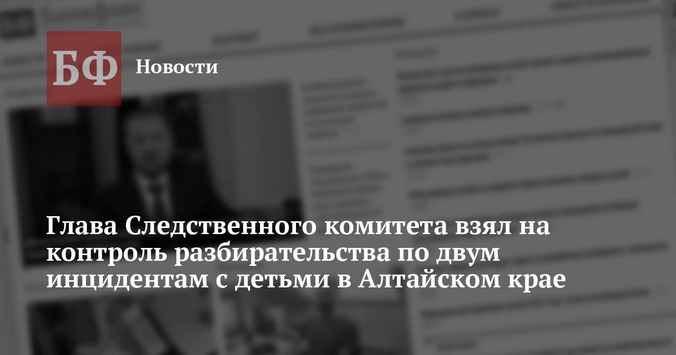 Председатель Следственного комитета России Александр Бастрыкин взял на контроль разбирательства по двум инцидентам с детьми в Алтайском крае. Как следует из сообщения пресс-службы ведомства, первый произошел в Рубцовске и связан с оказанием медицинской помощи при родах. Второй — в Барнауле, здесь речь идет о возможных противоправных действиях мужчины в отношении гулявших на улице детей.