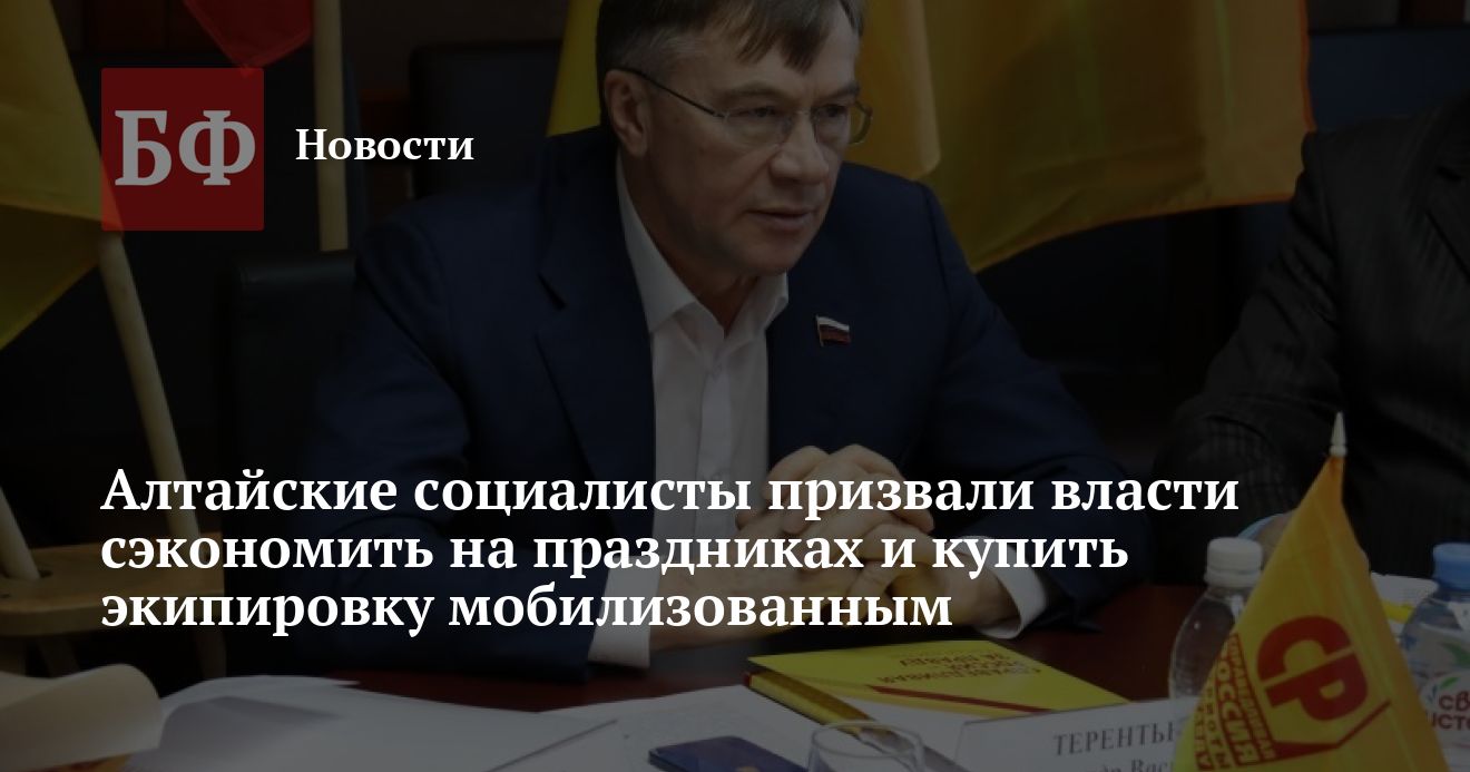 Депутат Государственной Думы, лидер алтайских социалистов Александр Терентьев считает, что праздничные мероприятия вовсе стоит отменить, а не просто сокращать на них расходы. «Я уверен, что мы сможем прожить без праздников в такое тяжелое для нашей страны время. Наши бравые солдаты сражаются сейчас на поле боя, защищая Родину. Не время тратить такие большие деньги на пышные праздники. Сэкономленные средства нужно израсходовать на приобретение экипировки для мобилизованных граждан и на помощь их семьям. Россия обязательно победит, и наша задача сейчас — помочь тем, кто добывает победу!» — подчеркнул депутат.