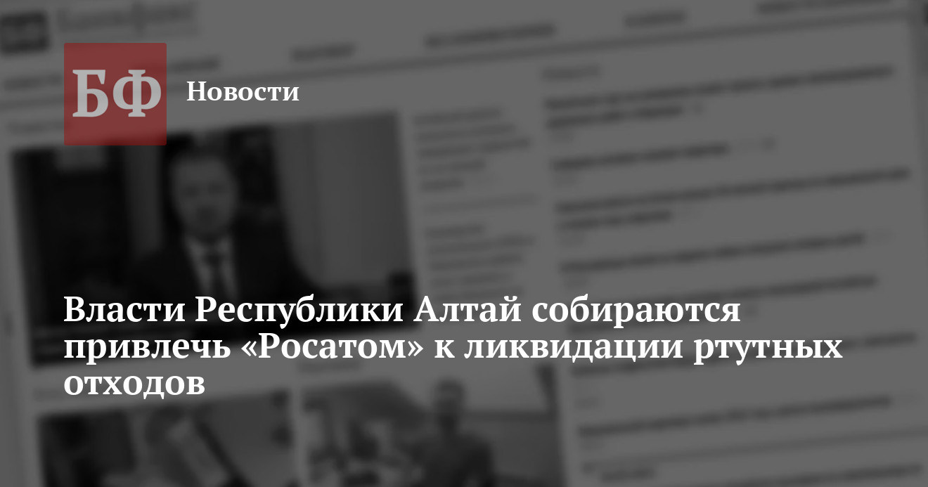 Правительство Республики Алтай предложило ГК «Росатом» стать единым оператором рекультивации ртутных отходов на территории Акташского горно-металлургического предприятия. Глава региона Олег Хорохордин рассказал ТАССу, что предварительное согласие от госкорпорации уже получили, но окончательное решение остается за правительством РФ. Ранее объект называли чуть ли не единственным темным пятном на экологической карте региона.