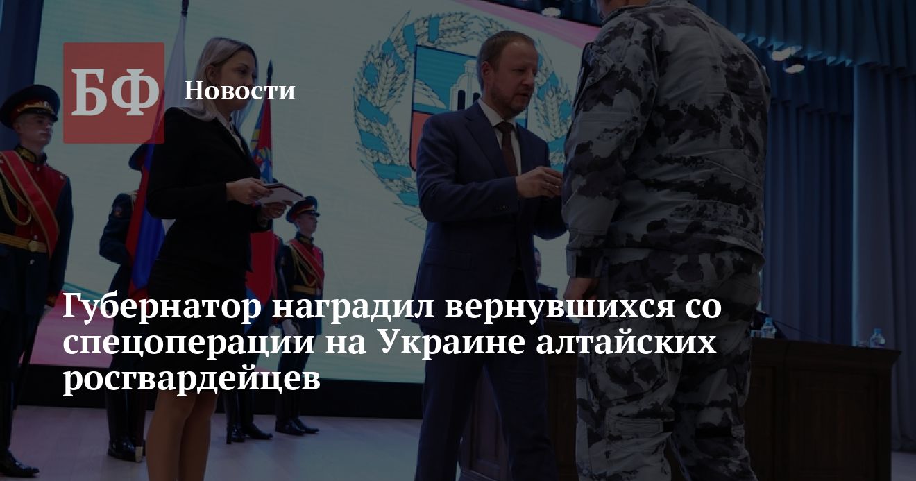 Губернатор Алтайского края Виктор Томенко вручил награды сотрудникам Росгвардии, успешно выполнившим задачи в зоне проведения специальной военной операции на Украине. Об этом сообщает пресс-служба правительства региона. Заметим, что ранее подобные мероприятия либо не проходили, либо широко не освещались.