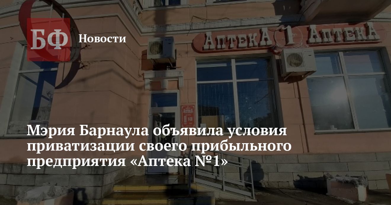 17 октября вышло постановление администрации Барнаула «Об условиях приватизации акций АО „Аптека № 1“ г. Барнаула, принадлежащих городскому округу — городу Барнаулу Алтайского края». В нем прописаны условия приватизации компании.