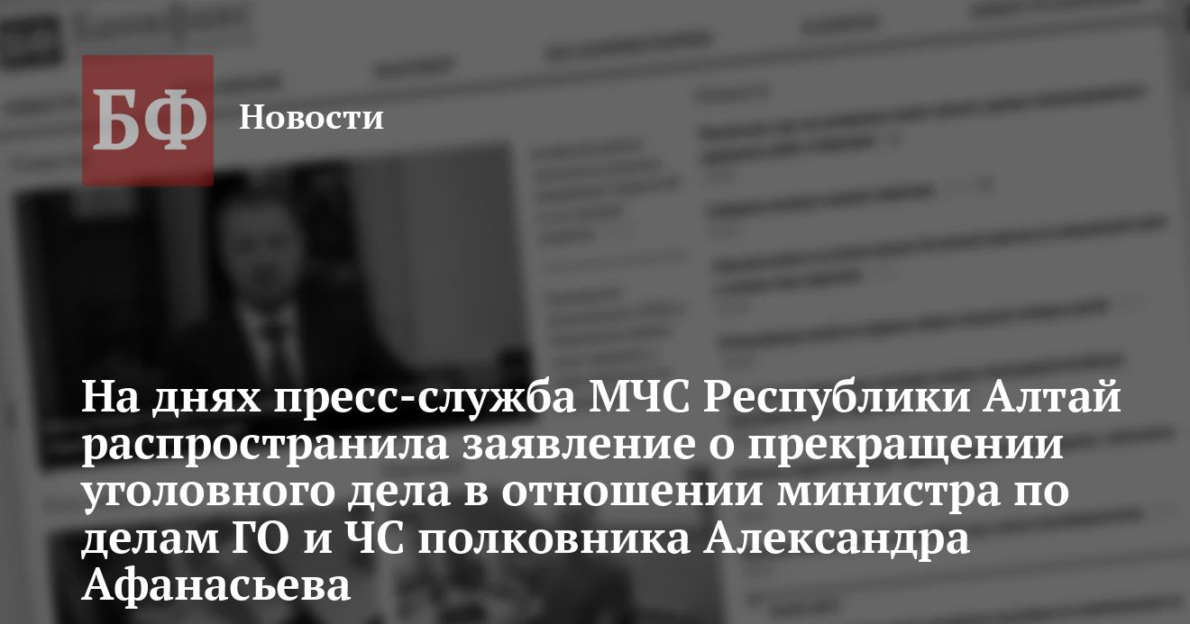 Как говорится в заявлении пресс-службы республиканского МЧС, «точку в этой неприятной истории поставило недавно принятое постановление военной прокуратуры СибВО о прекращении уголовного дела в отношении полковника Афанасьева за отсутствием в его действиях состава преступления». В заключение МЧС РА косвенно обратилось к писавшим об уголовном деле Афанасьева СМИ: «Хватит ли смелости тем, кто своими действиями нанес ущерб деловой репутации министра, признать свою ошибку и принести извинения»?
