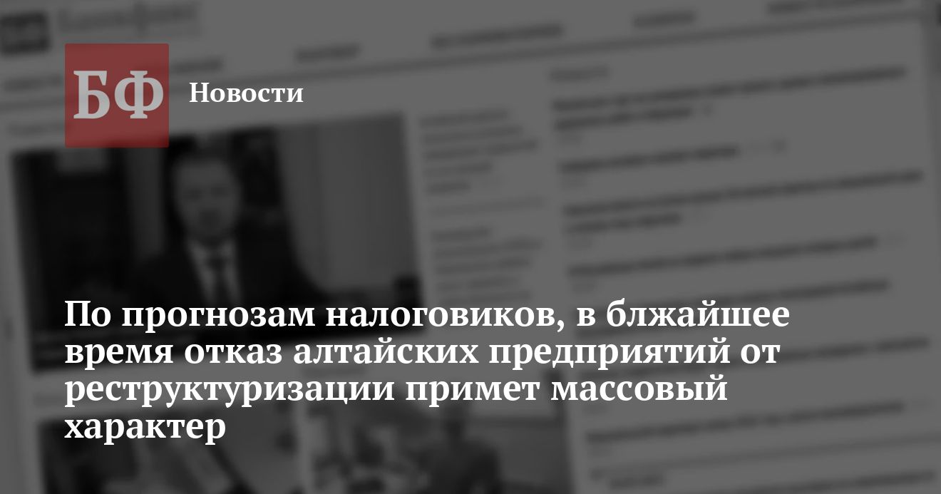 По мнению заместителя руководителя Управления МНС РФ по Алтайскому краю Владимира Вишнякова, в этом факте нет ничего сенсационного, поскольку в ближайшее время в крае (равно как и по всей России в целом) будет наблюдаться массовый отказ от реструктуризации.