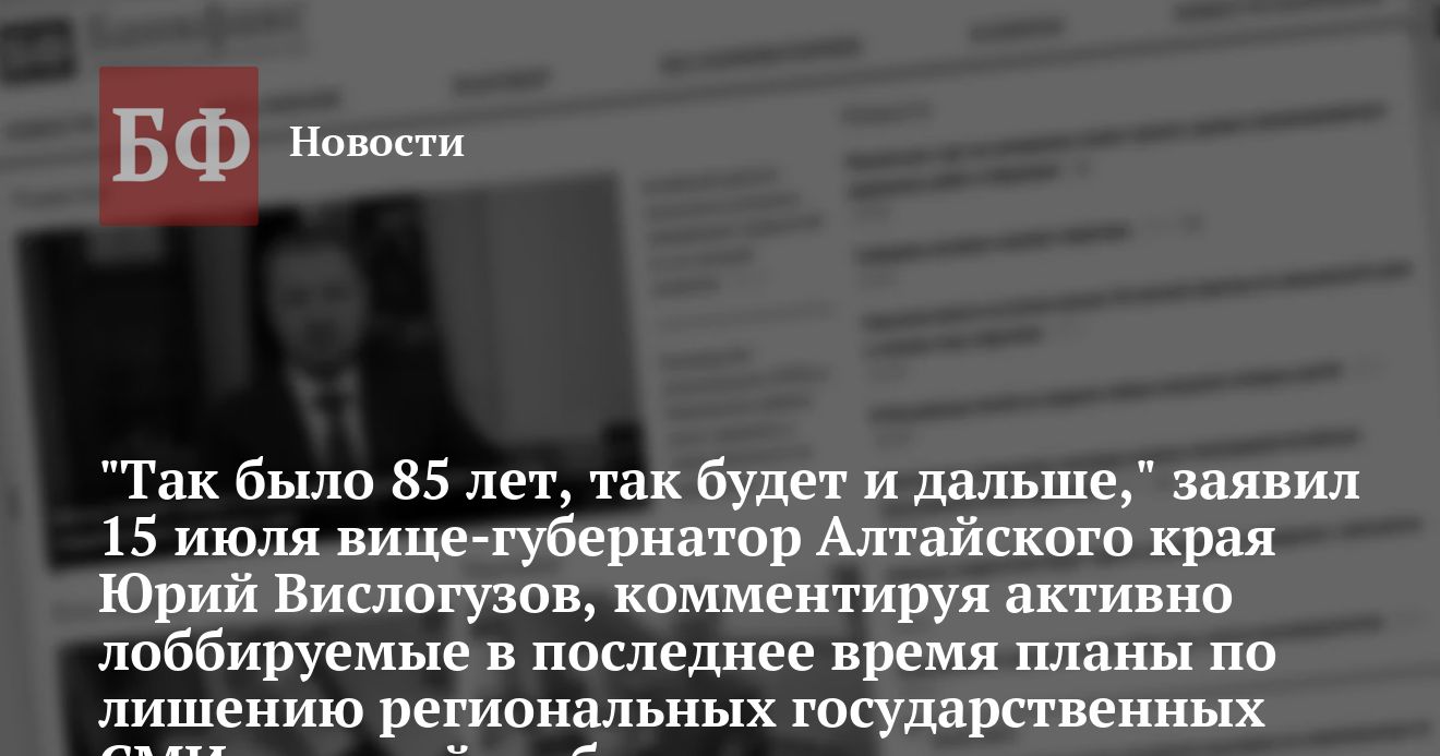 В то же время, непосредственно курирующий СМИ вице-губернатор Юрий Вислогузов отметил, что вопрос о ликвидации системы дотаций реально пока «не ставится». В целом в администрации существует понимание необходимости собственных СМИ, по меньшей мере в рамках схемы «1 газета, 1 радиостанция, 1 телевидение». «Все должно остаться в той же степени," отметил Вислогузов, назвав в качестве примера необходимости сохранения госдотаций газеты «Алтайская правда», Zeitung fur Dich, а также журнал «Алтай».