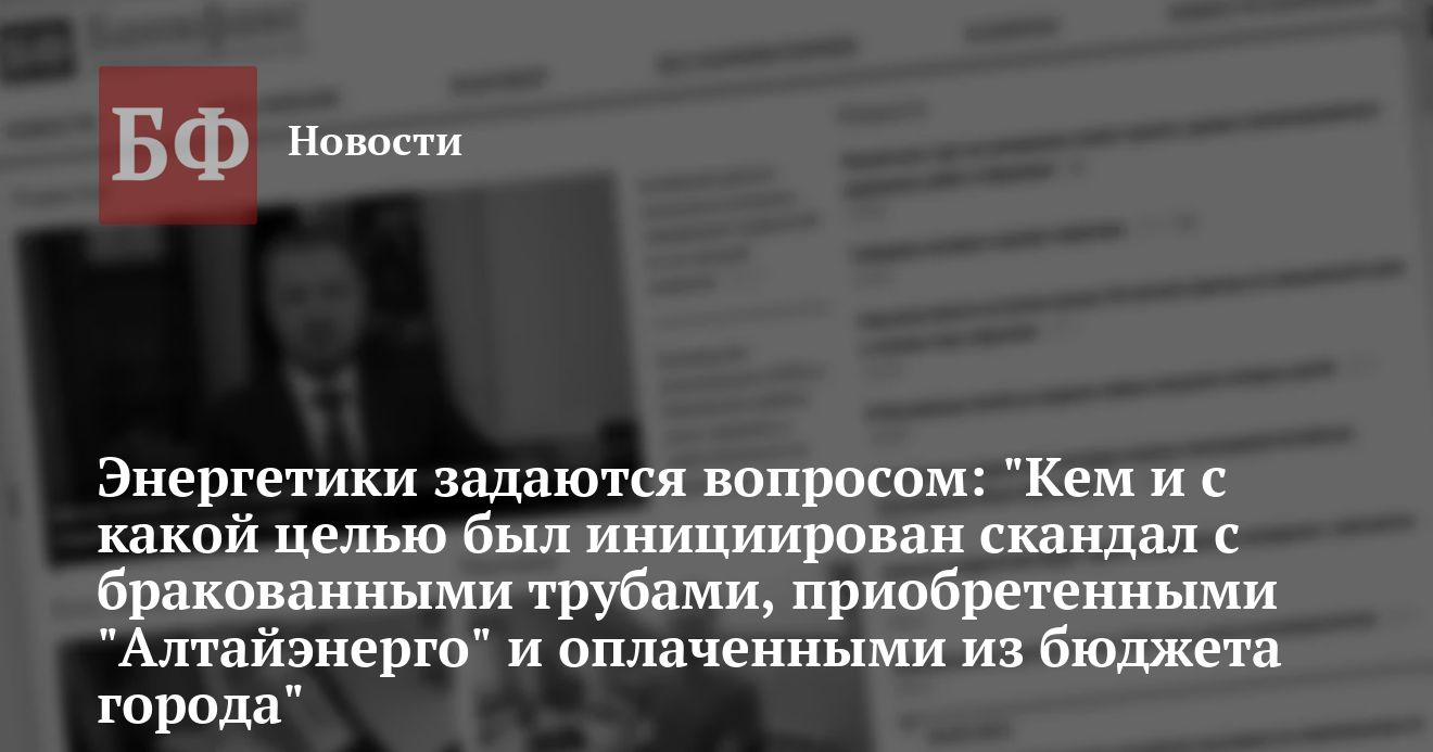 Мы уже сообщали о скандальной ситуации, связанной с поставкой на Алтай партии бракованных труб. Напомним, что ОАО «Алтайэнерго» в рамках подготовки к предстоящему отопительному сезону приобрело трубы у компании-посредника, минуя непосредственно производителя этой продукции. Причем трубы были оплачены не самими энергетиками, а из бюджета города Барнаула (средства на эти цели перечислялись в казну города из бюджета края в качестве дотаций на модернизацию региональной энергосистемы).