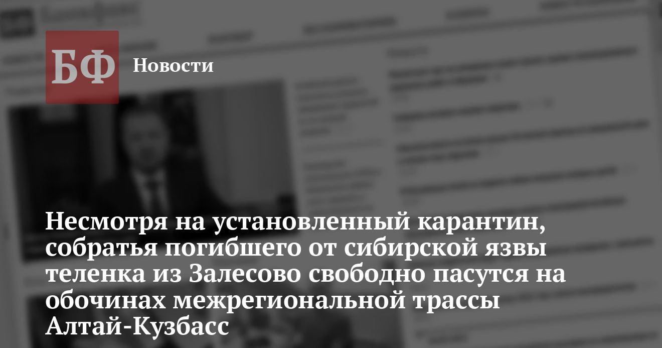 Как сообщалось, в середине августа в райцентре Залесово был зафиксирован случай заболевания полуторагодовалого теленка сибирской язвой. Туша зараженного бычка была сожжена, а в районе объявлен карантин. Крупный рогатый скот в Залесовском районе и прилегающих к нему районах края был подвергнут вакцинации.