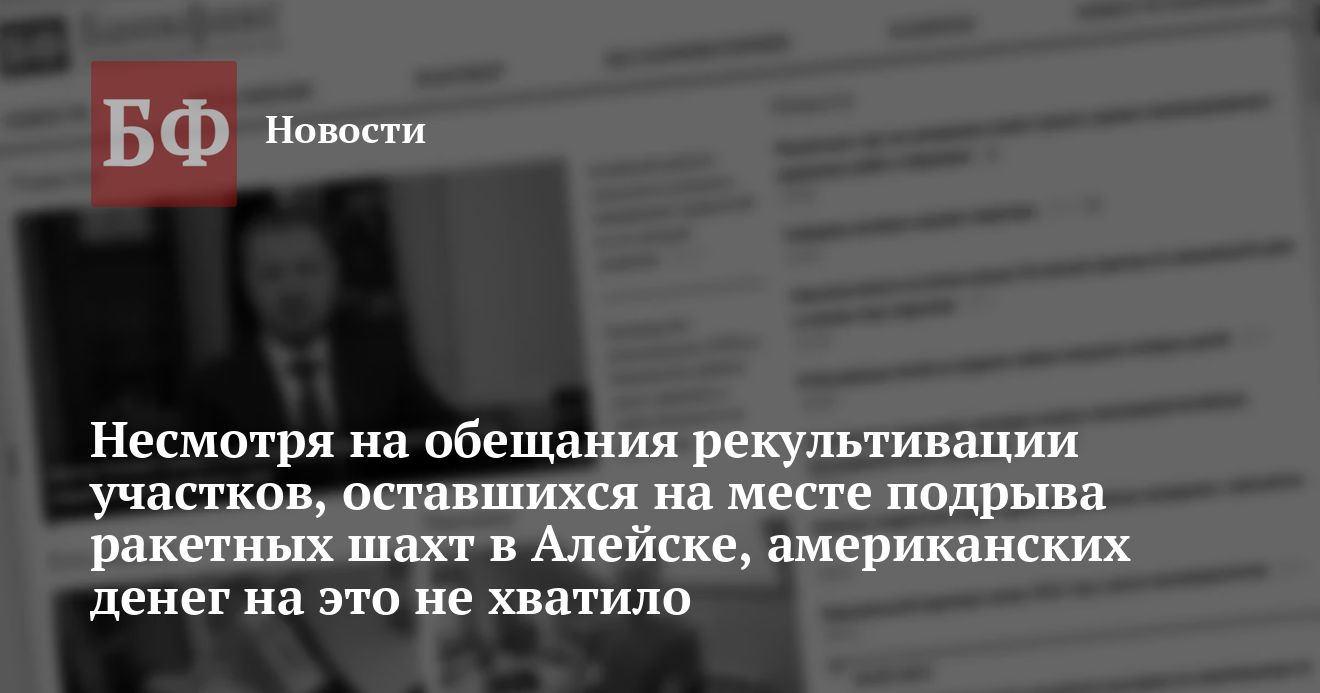 Как сообщалось. несколько недель назад в Алейске была завершена программа уничтожения путем взрывов площадок и шахт межконтинентальных баллистических ракет, входивших в состав дислоцированной там дивизии РВСН. Тревогу жителей города вызвал тот факт, что подрядчик на проведение рекультивации мест взрыва ПМК «Барнаулводстрой» утверждает, что средств, выделенных ему по выигранному тендеру на производство работ, хватает только на проведение технической рекультивации (предполагалось, что рекультивация участков должна была быть полной, включающей в себя биологическую составляющую посадку трав, деревьев и т.п.). Местные экологи, озабоченные этой проблемой, получили ответ о том, что представители США, в рамках договоренностей с которыми администрация Путина и проводила уничтожение ракетных шахт, выделили средства только на техническую рекультивацию мест взрывов.