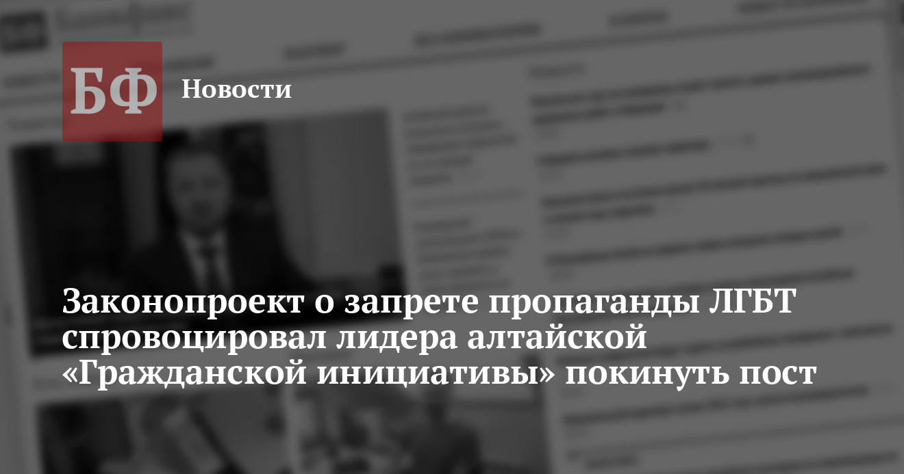 …Глава алтайского реготделения «Гражданской инициативы» Алешина заявила, что больше не будет заниматься политикой. «Я приняла непростое решение: ухожу из политики! Сегодня Государственная Дума приняла в первом чтении закон о запрете пропаганды ЛГБТ. Я не занималась подобной пропагандой, как вести публичную политическую деятельность, являясь открытой трансгендерной женщиной», - сообщила она….