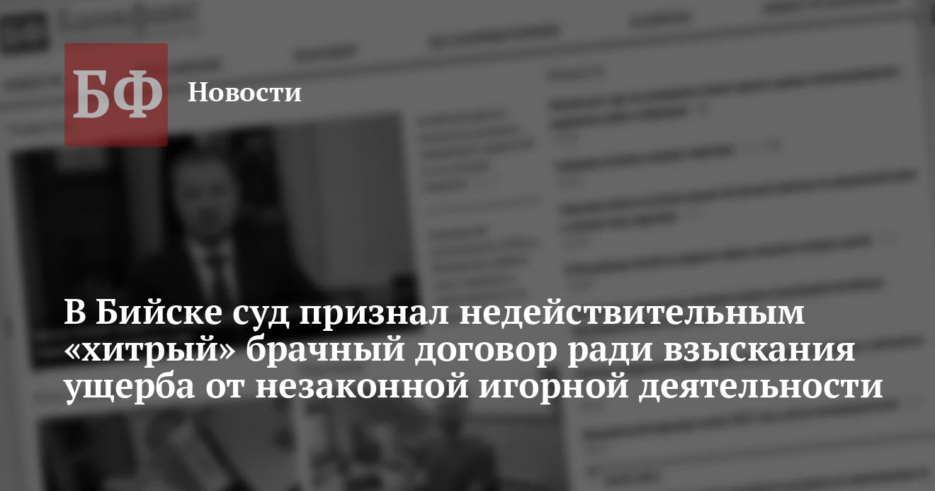 Чтобы брачный договор признали недействительным, прокурор Бийска обратился в городской суд. Его иск удовлетворили в полном объеме. Решение первой инстанции устояло в апелляции. «Удовлетворяя заявленные требования, суды согласились с позицией прокурора о том, что брачный договор является ничтожной сделкой, заключенной с целью исключения факта погашения задолженности перед Российской Федерацией», — пояснили в прокуратуре.