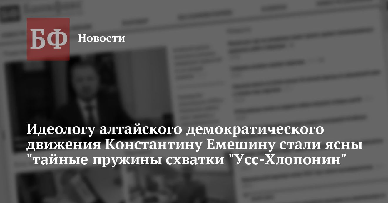 Комментируя итоги губернаторских выборов в Красноярском крае, один из лидеров «правого» движения на Алтае, зампредседателя политсовета краевого СПС Константин Емешин заявил, что «теперь стали ясны тайные пружины этой схватки». По мнению Емешина, штаб Хлопонина сыграл с кандидатом от КПРФ Сергеем Глазьевым партию, которую «играл генерал Лебедь на президентских выборах 96-го года, когда Лебедь во втором туре сделал выбор в пользу действующего президента Ельцина». Таким образом, как полагает идеолог алтайской демократии, коммунисты обеспечили себе финансирование на предстоящий избирательный цикл.