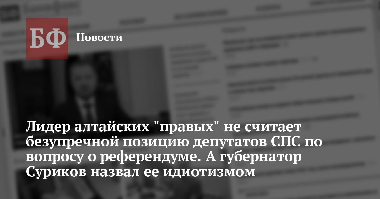 Как иронично отметил Суриков, проголосовав за принятие поправок, «правые» показали, насколько они «демократичны». Их позиция, по мнению алтайского губернатора, обусловлена тем, что один из лидеров СПС Анатолий Чубайс является олигархом. «Это же идиотизм!» резюмировал глава края.