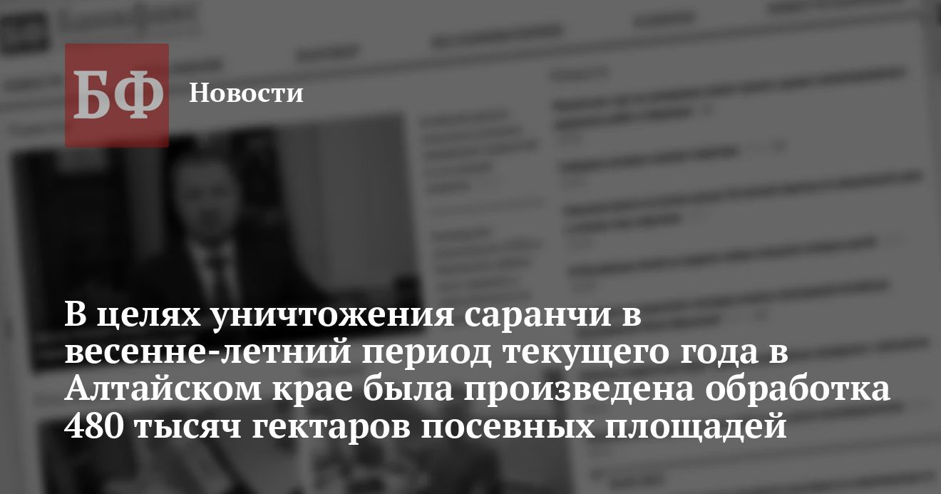 В целях уничтожения саранчи в весенне-летний период текущего года в Алтайском крае была произведена обработка 480 тысяч гектаров посевных площадей