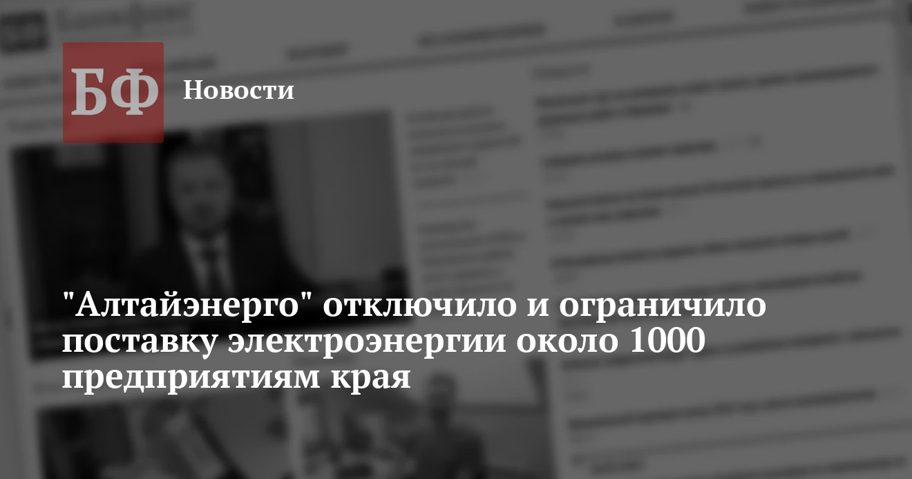 В связи с этим «Алтайэнерго» вынуждено было пойти на отключение и ограничение поставки электроэнергии злостным неплательщикам. На сегодняшний день, по словам Нестерова, примерно 1000 предприятиям края отключена или ограничена поставка электроэнергии. Так, отключена подача электроэнергии ОАО «Алмак», задолженность которого составляет 39 месяцев, ХБК, долг которого превысил 30 млн рублей. Ограничена подача электроэнергии таким предприятиям как Сибэнергомаш, ВРЗ, АЗА и многим другим.