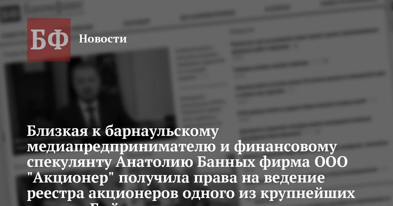 Как отмечалось в региональных СМИ, ООО «Акционер» ранее уже было активно задействовано в ходе проведения известным барнаульским предпринимателем Анатолием Банных кампаний по установлению контроля над рядом инвестиционно привлекательных предприятий. Так, в конце 2001 начале 2002 гг. практически аффилированнный со структурами Анатолия Банных «Акционер» своими действиями активно помогал ему установить контроль над впоследствии проданным за крупную сумму ОАО ХК «Барнаултрансмаш» (вторым претендентом на контрольный пакет «Трансмаша» тогда выступал известный криминальный олигарх из Екатеринбурга Павел Федулев, в настоящее время также продавший свой пакет акций).