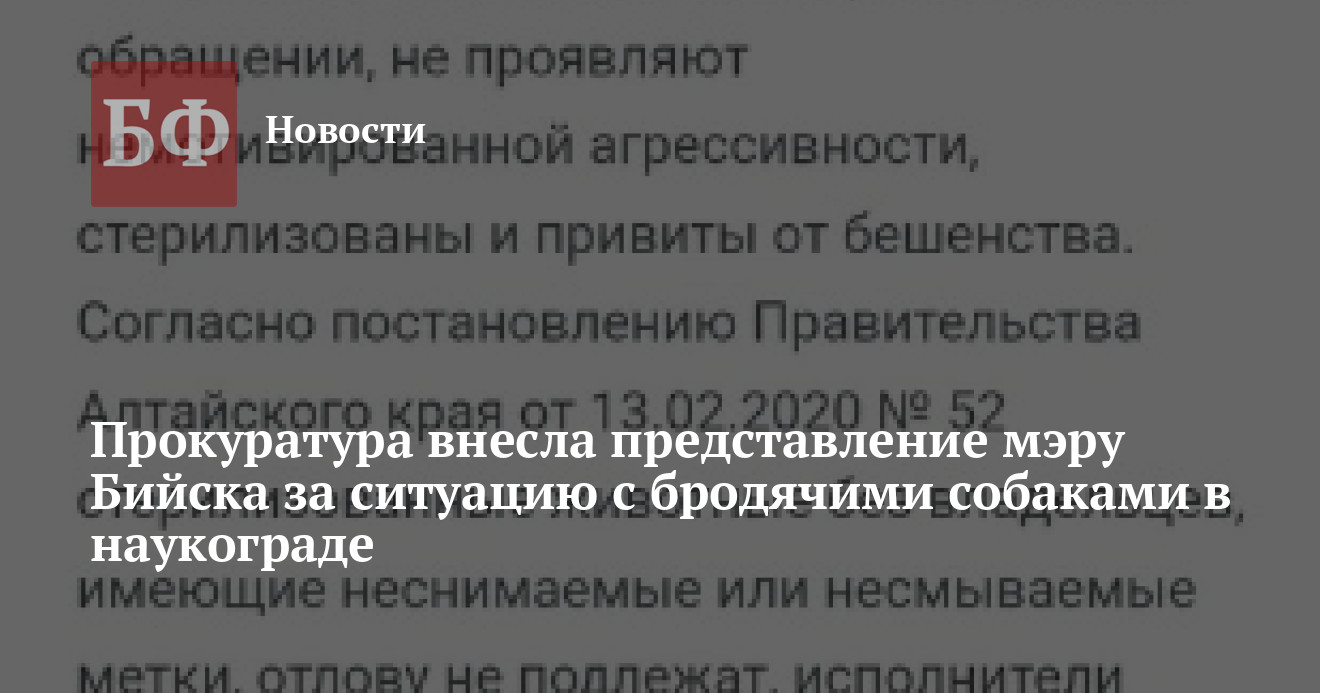 Почему возникла подобная «нестыковка», объяснить не представляется возможным. Так или иначе, прокуратура выявила в работе мэрии нарушения. «В связи с выявленными нарушениями при организации отлова, содержания и возврата в прежние места обитания (нарушение срока отработки заявок на отлов безнадзорных животных) 18 ноября прокурор Бийска внес преставление главе Бийска, и сейчас оно на рассмотрении. В прокуратуре Бийска остается на контроле остается реализация администрацией наукограда переданного полномочий по отлову и содержанию безнадзорных животных, исполнение АНО «ОЗЖ «Преданность»» муниципального контракта», — сообщили прокуратуре.