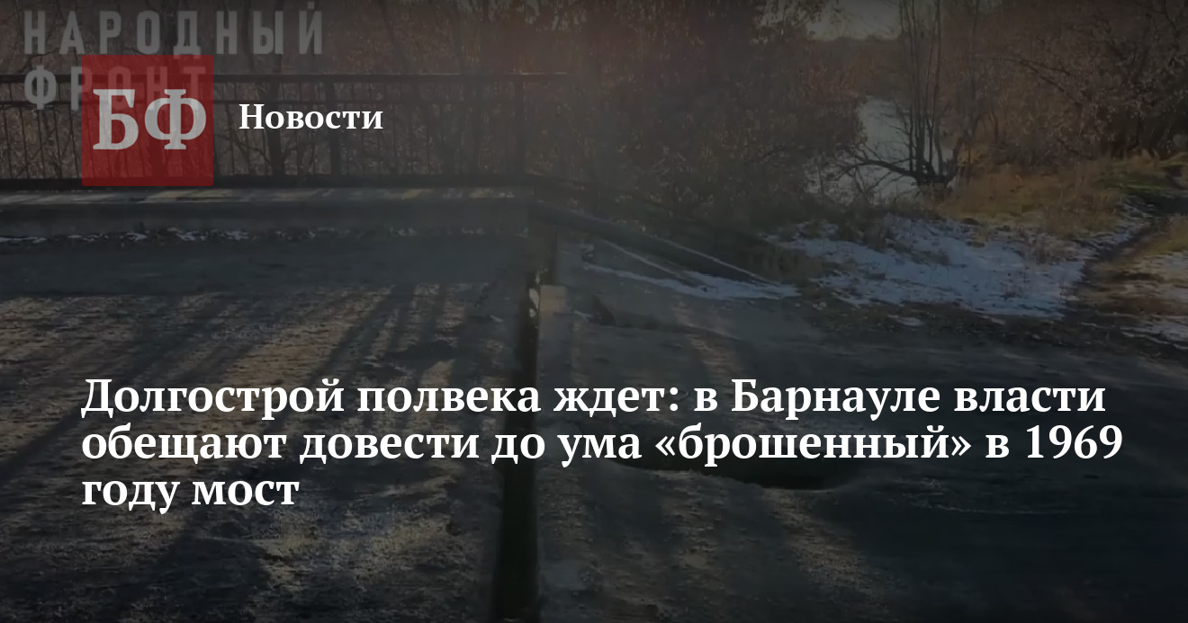 Администрация Барнаула заказала разработку проектно-сметной документации для реконструкции аварийного моста через Барнаулку в поселке Кирова на проезде Канатный, 102 «А». Как сообщает пресс-служба мэрии, работы могут начаться в 2023 году. Ранее горожане и общественники обращали внимание на ужасное состояние строения: в нем зияют огромные дыры, в которые может провалиться человеческая нога, а ограждение частично сломано. Как выяснилось, его строили еще в 1960-х годах, но не закончили, и с тех пор граждане пользуются фактически не введенным в эксплуатацию объектом.