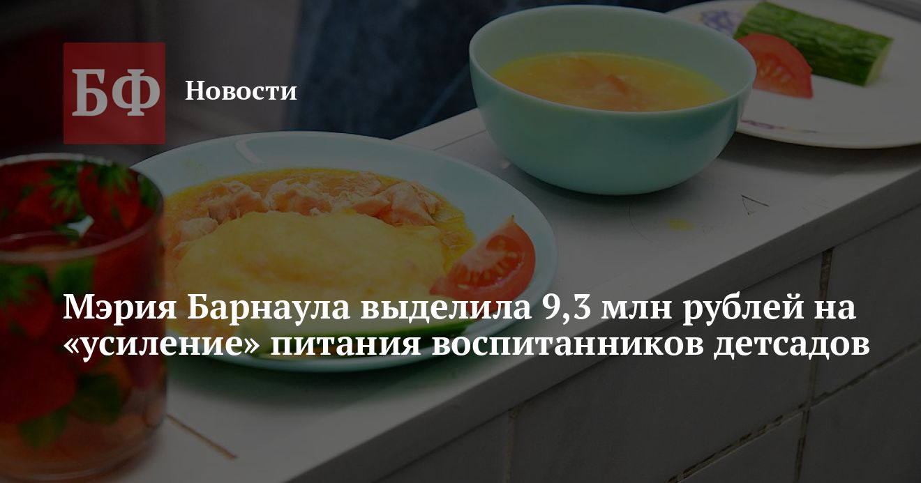 6 декабря пресс-служба администрации Барнаула сообщила о том, что по поручению главы города Вячеслава Франка из местного бюджета дополнительно выделили 9,3 млн рублей для организации полноценного и качественного питания в детсадах.