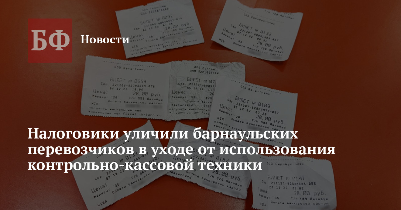 В Барнауле шестерых перевозчиков, водители которых просят оплачивать проезд на личную банковскую карту и отказываются проводить оплату через терминал, уличили в неправомерном отказе от использования контрольно-кассовой техники (ККТ), что является административным правонарушением. Как пояснили редакции в управлении ФНС России по Алтайскому краю, куда ИА «Банкфакс» направляло запрос, по закону перевозчики всегда должны использовать контрольно-кассовую технику, чтобы покупатель мог сразу после расчета, или несколько позже, в течение суток, получить кассовый чек. Это правило действует для всех маршрутов, и оправдания о том, что маршрут не включен в цифровую систему «Центртранса», здесь не работают.