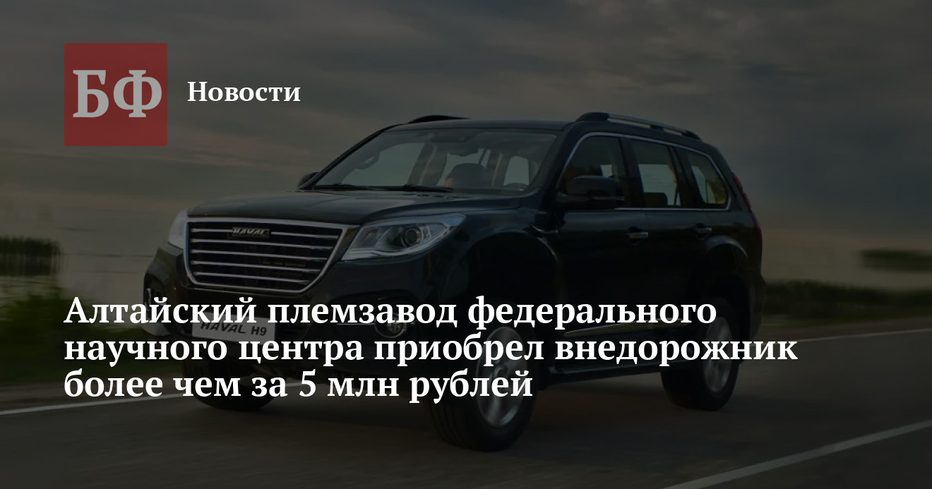 Филиал федерального алтайского научного центра агробиотехнологий также решил обновить автопарк к Новому году и приобрел автомобиль за 5,1 млн рублей. Как следует из документов портала Госзакупок, внедорожник купили для племзавода «Комсомольское» в Павловском районе. В прошлом году учреждение уже отметилось покупкой Toyota Land Cruiser Prado за 4,6 млн рублей, а в этом приобрело еще одну машину за 4,2 млн рублей.