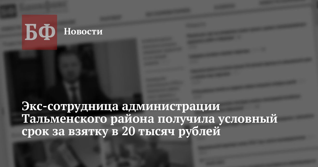 6 декабря Тальменский районный суд вынес обвинительный приговор в отношении бывшего архитектора, заместителя заведующего отделом по капитальному строительству и архитектуре администрации муниципалитета. Ее признали виновной в преступлении, предусмотренном ч. 3 ст. 290 УК РФ (получение должностным лицом взятки за незаконные действия или бездействие).