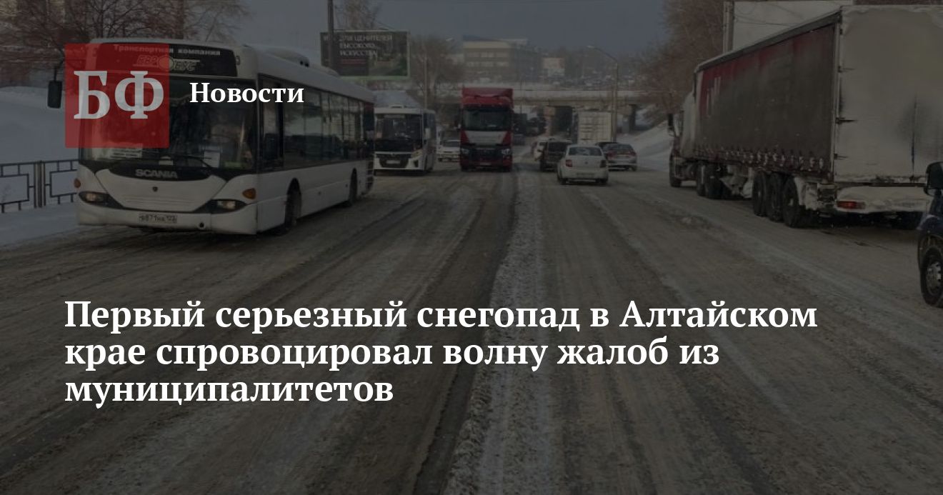 Первый снегопад, который случился в Алтайском крае 13 декабря, ожидаемо вызвал волну жалоб среди граждан на заснеженные дороги. Так, «Бийский рабочий» пишет про «заметенный» наукоград, паблик Barnaul 22 — про недостаточно качественную очистку проспекта Калинина в районе железнодорожного моста, из-за чего буксуют большегрузы, а «Черное и Белое Барнаул» публикует «крик души» жителей села Рассказиха, где власти организуют расчистку дорог якобы только после скандалов.