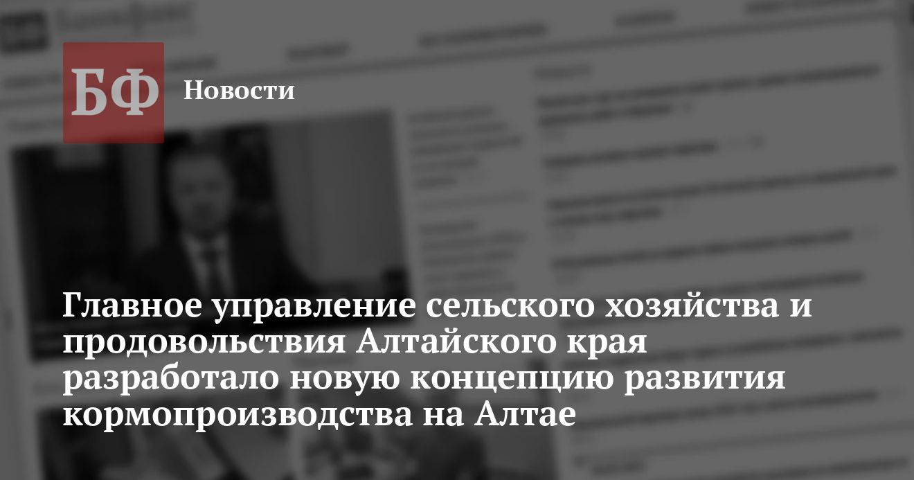 Новая концепция развития кормопроизводства в Алтайском крае была представлена 22 августа на расширенном заседании коллегии Главного управления сельского хозяйства и продовольствия, в котором приняли участие представители 60 районов края. Концепция предусматривает развитие полевого кормопроизводства, улучшение качества кормовых культур протеином, внедрение новых технологий и техники, а также развитие научной базы кормопроизводства.