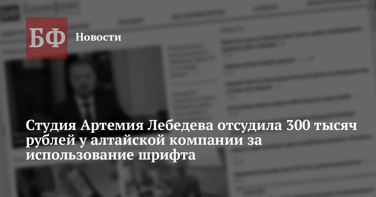 Арбитражный суд Алтайского края принял решение о взыскании 300 тысяч рублей с барнаульского ООО «АС-Агро» в пользу студии известного российского дизайнера Артемия Лебедева. Как указано на сайте суда, эти деньги — компенсация за нарушение исключительных прав студии на один из шрифтов.