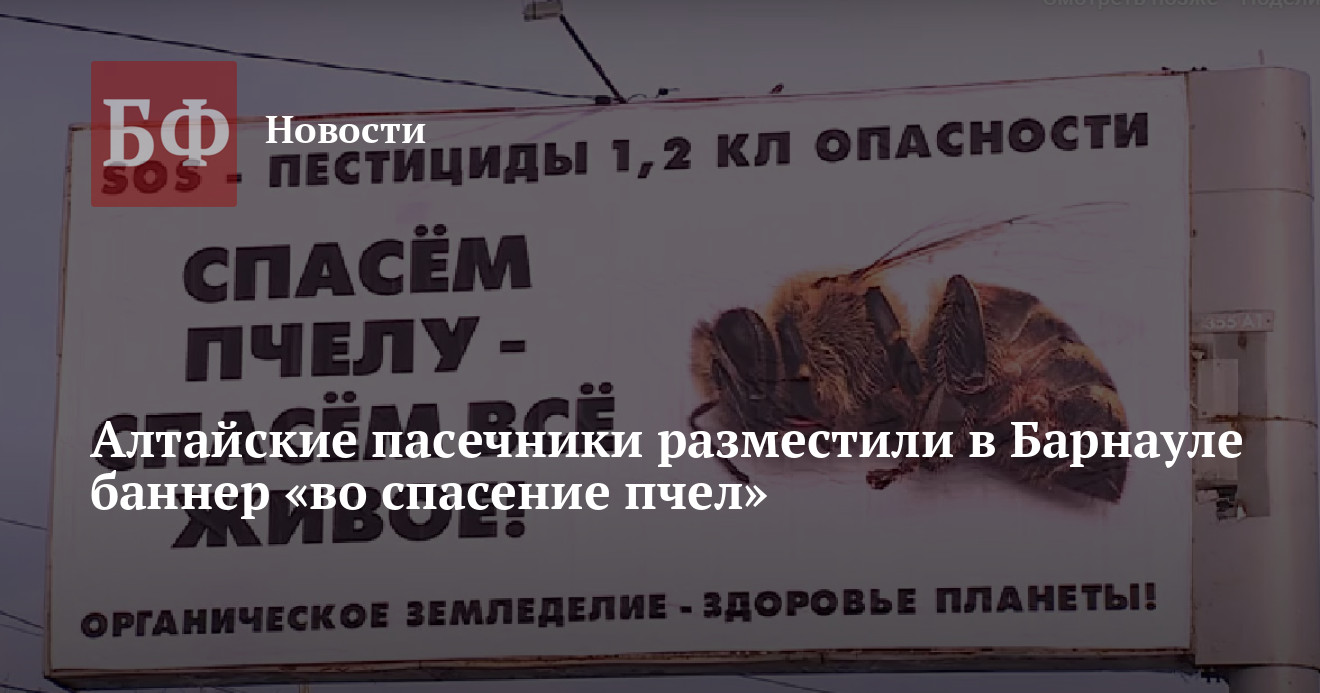 Баннер «во спасение пчел» находится в самом центре Барнаула — на улице Ползунова, в районе пересечения с проспектом Красноармейским. Его авторы увязали воедино две проблемы, которые могут быть обусловлены применением мощных ядохимикатов — подрыв здоровья людей, которые потребляют выращенные на «отравленных» полях продукты, и массовая гибель пчел. Также они указывают на то, что пчелы имеют огромное значение для планеты в качестве опылителей растений.