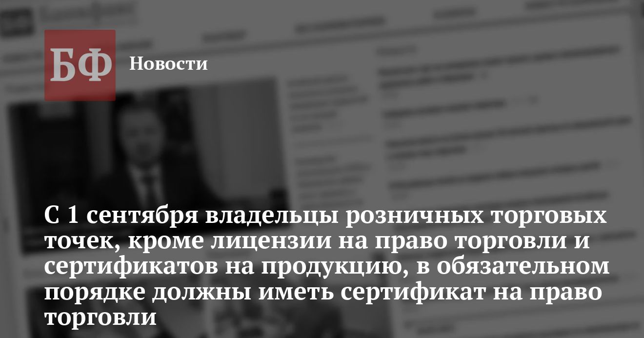По словам Регины Мирошник, для получения сертификата торговой точке или сети магазинов необходимо приобрести в Центре стандартизации, метрологии и сертификации пакет нормативных документов и работу торговых точек привести в соответствие этими нормативными документами. Кроме того, на каждую торговую точку необходимо иметь заключение СЭЗ и противопожарной службы, справку о наличии охранной сигнализации, а также документы о профессиональном торговом образовании продавцов. После того, как все эти документы будут представлены в Центр стандартизации, метрологии и сертификации, будет приниматься решение о выдаче данной торговой точке или сети магазинов сертификата на право торговли. Сеть магазинов может получить один сертификат на все торговые точки, но при этом справки и документы должны быть представлены на каждую торговую точку, в том числе и на палатки и лотки.