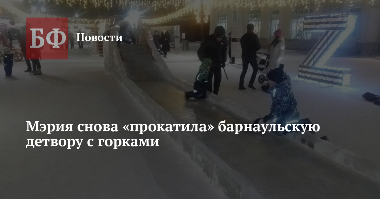 В декабре 2021 года жители Барнаула неожиданно узнали, что единственным бесплатным детским развлеченьем в зимнем городке на площади Сахарова будет ледяной лабиринт, а традиционных горок — больших, средних и маленьких, которые были главным объектом притяжении детворы, — нет. Формальным поводом для этого стало якобы позднее поступление в администрацию Барнаула документов от Инспекции гостехнадзора Алтайского края касательно таких объектов. «В октябре мы получили документы от ведомства. Согласно требованиям Таможенного союза, ледовые горки теперь относятся к аттракционам. Они должны иметь сертификаты безопасности. На каждой горке должен быть оператор, чтобы не допускать людей на нее в произвольном порядке. Мы в короткие сроки все предписания Гостехнадзора выполнить не могли, поэтому решили отказаться от ледяных горок на территории Барнаула. Тем более, это решение наложилось на серьезную ситуацию с пандемией», — объяснял «Амителу» на тот момент заместитель председателя комитета по дорожному хозяйству, благоустройству транспорту и связи Иван Гармат (сейчас он уже председатель комитета).