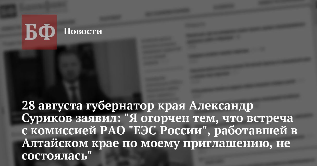 Как известно, почти неделю в Алтайском крае работала специальная комиссия РАО «ЕЭС России», которая прибыла по приглашению администрации края и проверяла работу ОАО «Алтайэнерго». В ходе работы комиссии планировалось провести встречу с руководством администрации края с тем, чтобы прорешать вопросы возможной частичной оплаты за электроэнергию взаимозачетами. Однако, никто из представителей администрации края не встретился с комиссией.
