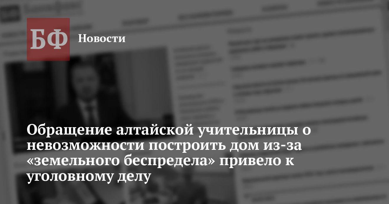 Органы СУ СКР по Республике Алтай возбудили уголовное дело о халатности в администрации Турочакского района после видеообращения молодой учительницы из села Усть-Пыжа о несоответствии фактических границ земельных участков планам, из-за чего она не может начать строительство дома. Об этой ситуации известно много лет, но местные власти не предпринимали мер по ее решению. Из сообщения пресс-службы ведомства следует, что халатность могли проявить не только районные чиновники, но и работники кадастровой палаты.
