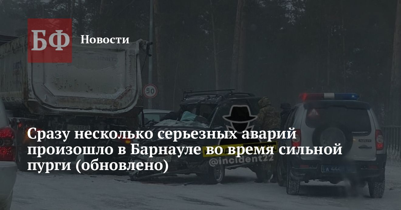 UPD 16:06: Как сообщает ГУ МВД по Алтайскому краю относительно аварии у Старого моста, водитель автомобиля Toyota Corolla, двигаясь со стороны Барнаула в направлении Новоалтайска, не учел погодные дорожные условия и допустил столкновение с движущимся перед ним автомобилем Toyota. После этого от удара японскую иномарку отбросило на полосу дороги, предназначенную для встречного движения, где произошло столкновение с автомобилем Nissan Murano. Через некоторое время произошло второе дорожно-транспортное происшествие с участием автомобилей Toyota Corolla, Toyota Caldina, Mazda Titan и Nissan Murano.
