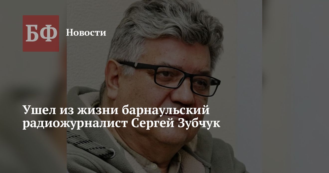 Как пишет Союз журналистов Алтайского края, Сергей Зубчук ушел из жизни на 65-ом году жизни. Известно, что он много лет сотрудничал с медиагруппой FM-Продакшн, в том числе работал главным редактором радио «Эхо Москвы» в Барнауле. Слушатели называли его «золотым голосом» алтайской журналистики, что подчеркнули и в Союзе.