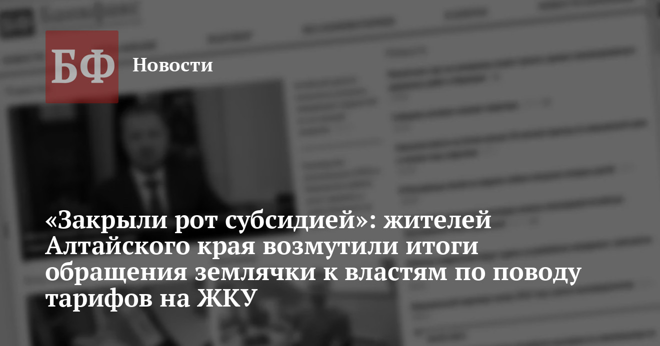 Жительница Барнаула, ранее написавшая обращение в адрес президента РФ Владимира Путина по поводу огромных платежей за коммунальные услуги, рассказала об итогах своей инициативы. Письмо «спустили» в регион и с автором лично встретилась министр соцзащиты Алтайского края Наталья Оськина и подробно разъяснила ситуацию. Кроме того, ей помогли оформить субсидию на ЖКУ и подать заявление на выплаты детям. Женщина указывает, что субсидия якобы положена абсолютно всем, с чем не согласились пользователи соцсетей. В Минсоцзащиты тоже указывают, что к получателям субсидии есть определенные требования. В то же время куда больше граждан оказались возмущены тем, что горожанка, выступившая от имени всех жителей края, в итоге просто решила проблему персонально для себя и осталась этим удовлетворена.