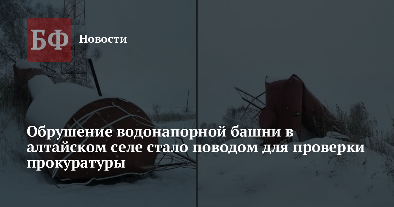 В селе Аллак Каменского района рухнула водонапорная башня, построенная в 2021 году. Глава сельсовета Татьяна Печенина сообщила «Банкфаксу», что жители без воды не остались, и в настоящее время решается вопрос о том, чем заменить коммунальный объект. В компании «Алтайводсервис», установившей башню, редакции заявили, что причиной обрушения могла стать неверная эксплуатация, хотя в местном водоканале опираются на версию с нарушениями со стороны подрядчика. Как бы то ни было, в прокуратуре редакции сообщили, что по факту происшествия организована проверка.
