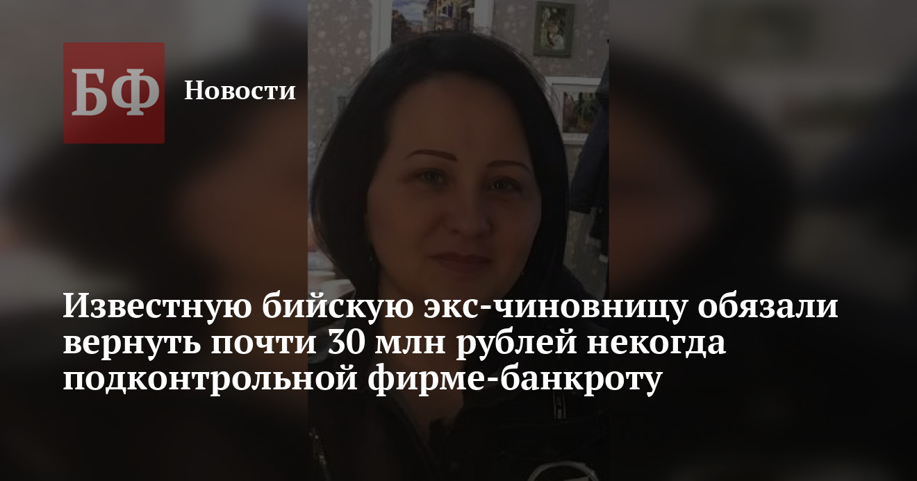 Арбитражный суд Алтайского края обязал известную бийскую предпринимательницу Светлану Пермякову вернуть 28,7 млн рублей ранее подконтрольному ей ООО «Восточный дорожник», который сейчас находится в стадии банкротства. Как следует из документов с сайта арбитража, Пермякова пыталась вывести деньги с предприятия, используя при этом сомнительные агентские и арендные договоры. Доказать обратного в рамках слушания она не смогла.