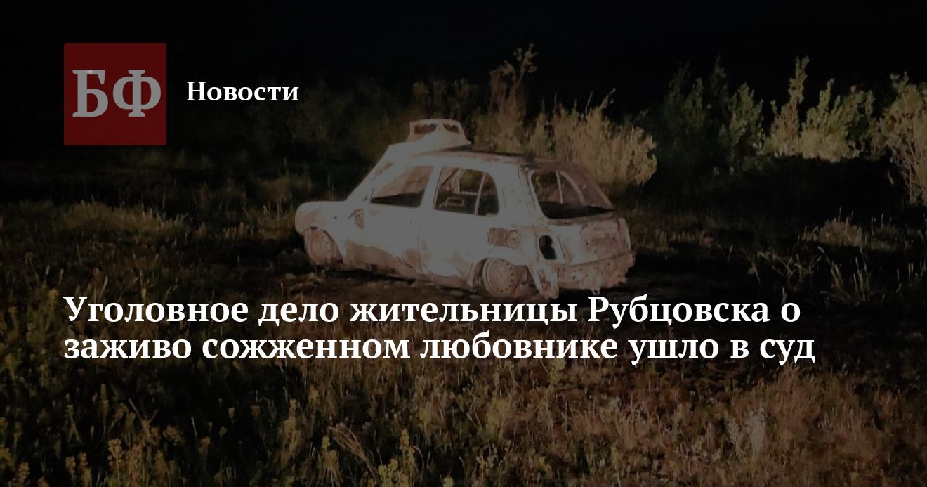 Следственные органы завершили расследование уголовного дела в отношении 41-летней жительницы Рубцовска, которую обвиняют в убийстве с особой жестокостью — по версии СУ СКР по Алтайскому краю, она заживо сожгла своего любовника вместе с машиной. Женщина уже дала признательные показания, указывает следком. Региональная прокуратура утвердила обвинительное заключение.