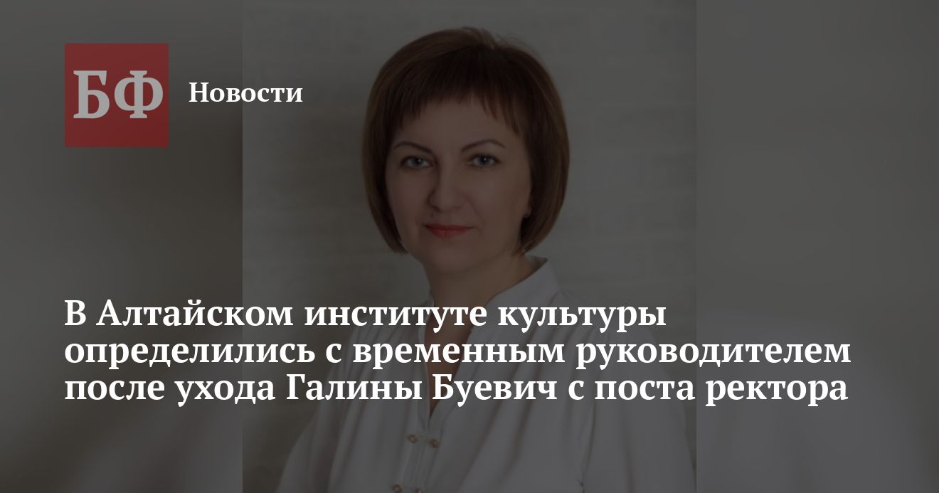 Как сообщалось ранее, 26 января в Алтайском государственном институте культуры прошло заседание ученого совета, на котором Галина Буевич попрощалась с коллегами. Она, по ее словам, подала заявление об увольнении в Министерство культуры России, в соответствии с которым последним рабочим днем для нее должно было стать 30 января. Тогда же упоминалось, что в качестве кандидатуры и.о. ректора министерству предложили Олесю Кутькину — проректора по учебной работе, которая работает на этой позиции уже шесть лет. Как стало известно теперь, Кутькина действительно возглавила вуз до проведения выборов нового ректора.