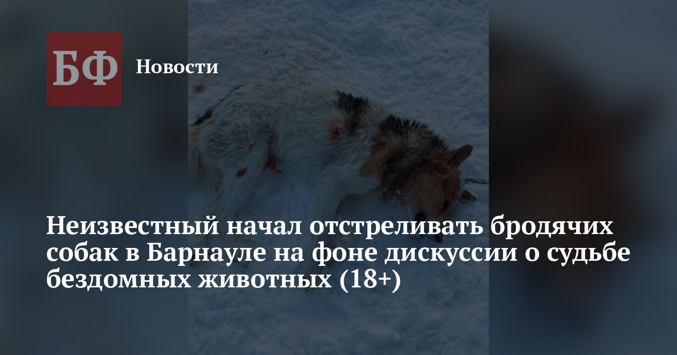 Жители Барнаула в соцсетях сообщают о неизвестном, который отстреливает бродячих собак. В подтверждение очевидцы приводят фотографии и видео, на место выезжала полиция. Это происходит на фоне обсуждения «собачьего» вопроса среди жителей города и народных избранников. Так, некоторые депутаты считают оправданным отстрел и считают, что принятый в АКЗС закон об уничтожении волкособов направлен именно на это.