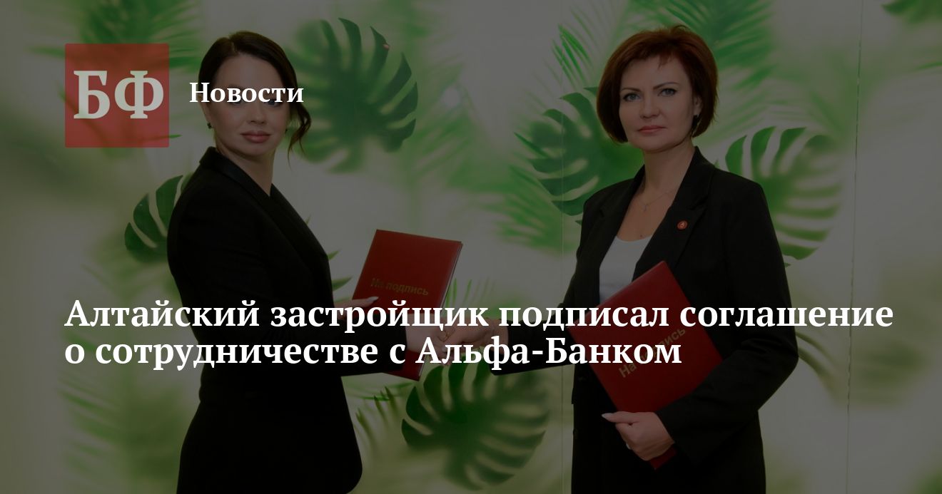 На минувшей неделе состоялось подписание соглашения о сотрудничестве ГК «Алгоритм» и Альфа-Банка. Документ заверили директор застройщика Ксения Белоусова и региональный управляющий операционного офиса банка «Алтайский» Ирина Бубенко. Партнерство предполагает строительство современного жилого комплекса в центре Барнаула.