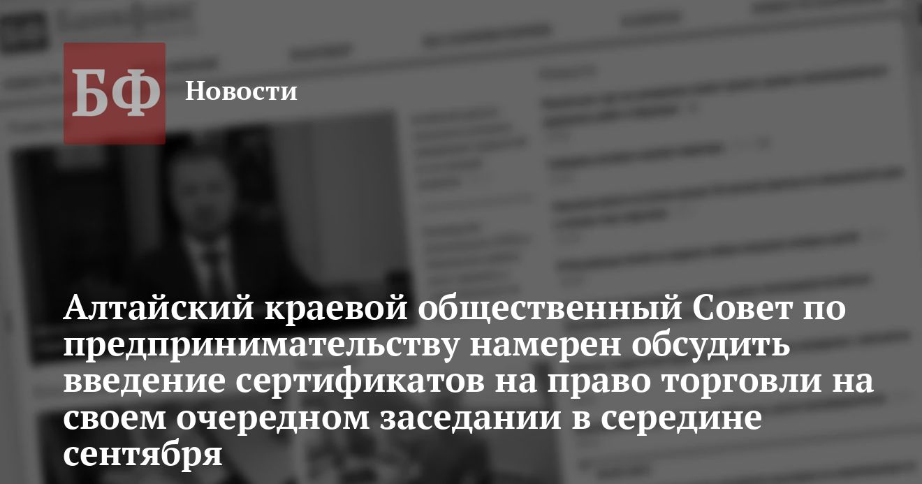 Как сообщил председатель Общественного Совета по предпринимательству Виктор Косихин, алтайские предприниматели были удивлены тем, что после появления 27 июля постановления Госстандарта о введении сертификатов на право торговли уже к 1 сентября торговые точки должны иметь этот документ. По словам Виктора Косихина, некоторые предприниматели узнали о данном нововведении за несколько дней до 1 сентября, а некоторые и до сих пор пребывают в неведении, при этом с 1 сентября Центр стандартизации, метрологии и сертификации уже имеет право применять штрафные санкции за отсутствие сертификата.