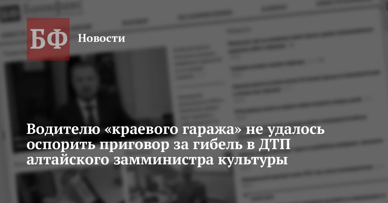 Кассационная инстанция подтвердила обвинительный приговор в отношении водителя, находившегося за рулем автомобиля в момент ДТП, в котором погибла замминистра культуры Алтайского края Галина Кубрина. Как сообщает пресс-служба прокуратуры Алтайского края, вердикт вступил в силу. Ранее мужчина получил один год и восемь месяцев условного срока, на момент приговора он работал в КГБУ «Автохозяйство № 1».