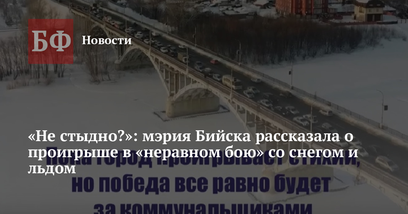 Администрация Бийска в своем аккаунте в соцсети «ВКонтакте» опубликовала позитивное видео про уборку городских дорог. В нем сообщается, что коммунальщики пока проигрывают «неравный бой» со стихией, но все равно победа будет за ними. Мажорная музыка и одобрительные комментарии попавших в кадр горожан добавляют «убедительности» такому оптимистичному прогнозу. Однако остальных жителей Бийска, судя по комментариям под видео, не захватила показанная в нем «история с хорошим концом». Они по-прежнему выражают гнев из-за заросших снегом и льдом улиц, а также показывают на своем примере, как «оперативно» работает мэрия в связке с дорожными службами.
