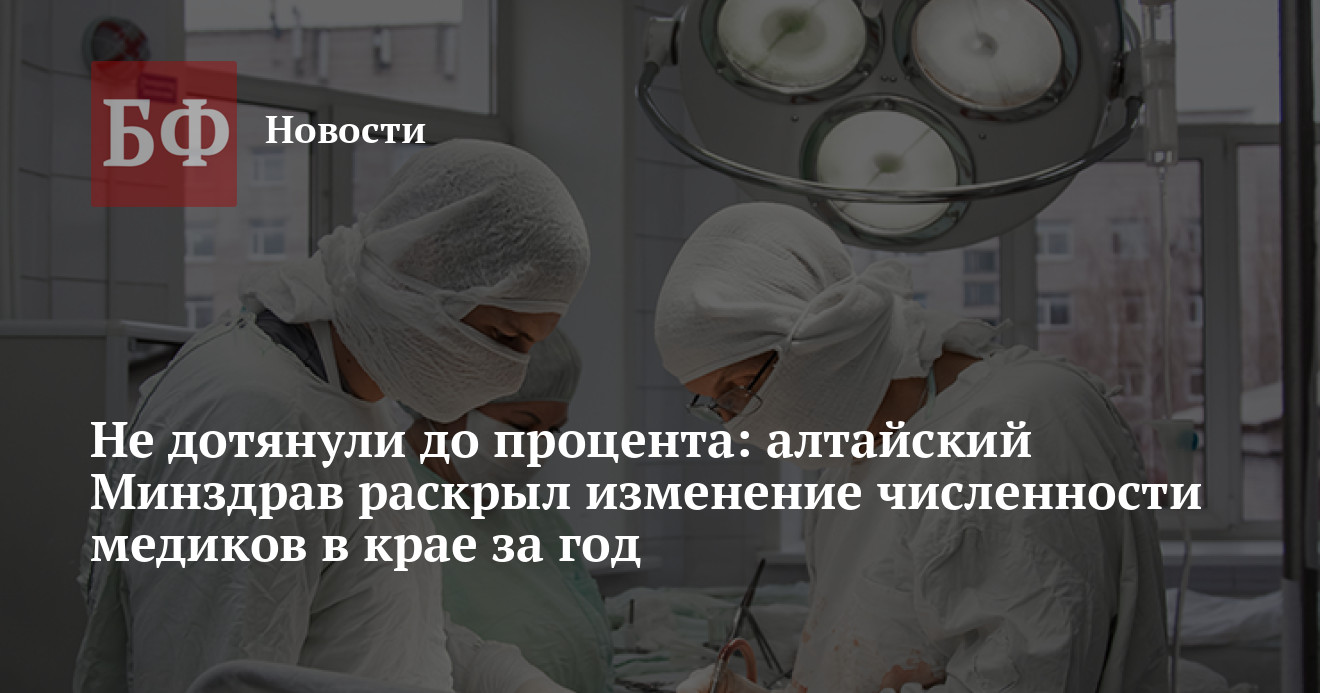 Прежде статистику по врачам и средним медработникам на начало октября 2022 года приводило правительство Алтайского края. Говорилось о том, что врачей в регионе — 7560, средних медработников — 19 875. Из этого следует, что за последние несколько месяцев 2022 года в регионе уволилось 244 человек из последней категории, к которой в том числе относятся медсестры. Не исключено, что их уход связан с федеральными доплатами по итогам года, на которые они рассчитывали в декабре, но не получили. Работницы КГБУЗ «Алтайский краевой кардиологический диспансер» устраивали по этому поводу забастовку. А их коллеги из КГБУЗ «Краснощековская ЦРБ» попросили прокуратуру и профсоюз защитить их права.